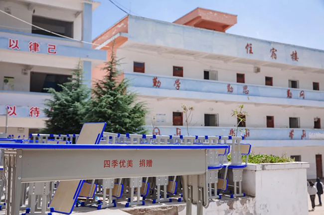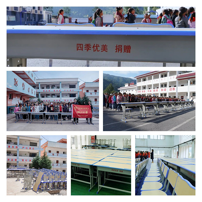 四季優美捐贈200套雙人標準化課桌椅到昭覺縣古里鎮中心校、谷曲鎮瓦洛烏小學、縣三小三所學校。